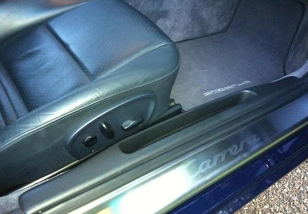 Baguettes de seuils de porte en acier spécial avec monogramme Carrera éclairées en blanc. Note : disponible au plus tôt à partir de 10/2009.