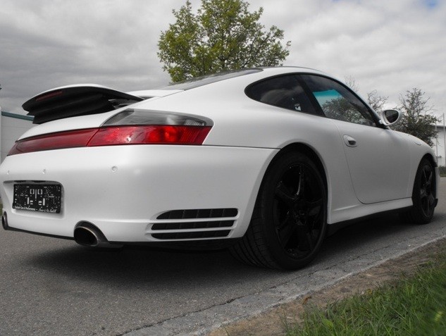 Elle a la couleur de la Turbo,elle a la gueule de la Turbo mais ce n'est pas une Turbo,la 996 Carrera 4S si on devait la résumer en quelques mots est somme toute une très belle auto réussie, fruit des efforts conjugués des ingénieurs et des stylistes de Zuffenhausen dont le savoir faire et la maitrise font l'unanimité dans le monde des Super cars. Très convoitée sur le marché des 911 d'occasion à moins de 40 000 euros le Porschiste a su tout de suite voir les nombreux avantages esthétiques des Carrera 4S dont la côte reste généralement 5000 euros au-dessus de ses consoeurs les Carrera 2 et les Carrera 4 déclinées elles-aussi en 320 cv. Le mythe 911 dans le non moins mythique look Turbo et à un prix désormais abordable pourquoi se priver ? d'autant qu'il est même plausible qu'avec un peu de chance votre belle allemande prenne, comme les séries limitées et le bon pinard, de la valeur avec les années; donc passion, raison et rentabilité ! what else Georges ?!