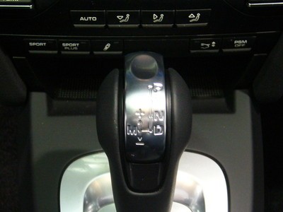 En Aluminium : insert dans la poignée de frein à main avec logo Porsche. En cuir lisse couleur intérieure avec coutures décoratives : poignée de frein à main , prolongement supérieur du frein à main . En AluDesign : prolongement inférieur du frein à main . Note : en noir si intérieur tout cuir en couleur personnalisée.