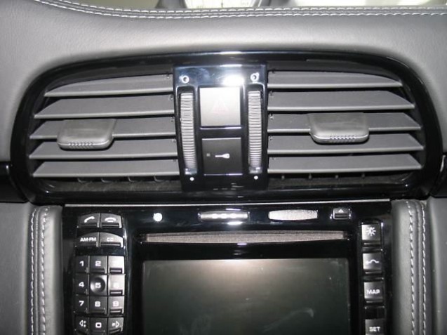Peint en Noir : lamelles des buses aération latérales , et centrale . En cuir lisse couleur intérieure avec coutures décoratives : buses aération latérales , entourage de la buse aération centrale incl. cache interrupteurs .