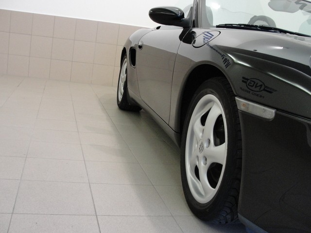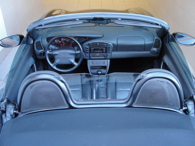 Un design sympa, qui véhicule l'image d'un roadster élégant et racé, qu'on a envie de croquer tant il est attachant. Un point très important à souligner, le Boxster 2.5, premier de sa catégorie chez le prestigieux constructeur de voitures sportives allemandes, sert de muse aux premières 996 3.4, avec des optiques avant et une calandre similaire, ce qui est quelque peu surprenant lorsqu'on sait que la 996, lors de sa sortie fin 1997, se vendait au prix sans option de 75 000 euros ; soit près du double du prix du Boxster. Désormais, le passage au modernisme des années fin 90 s'affiche chez le Boxster 986 2.5, dans la fluidité de ses courbes plus aseptisées, certes, mais plus aérodynamiques aussi ; on y gagne en efficacité et en sportivité ; d'ailleurs le très bon CX de 0,31 n'est sûrement pas le fruit du hasard. L'échappement, en position arrière centrale, est bien réussi ; il s'inscrit lui-aussi dans cette volonté de modernité et de constructions de voitures plus propres écologiquement, avec le passage au, tant décrié, refroidissement par air qui a tendance à museler le chant du flat 6.Et pour aller croiser le fer au nom d'une foi passionnée, cette monture Porsche baptisée Boxster 986 2.5 est parfaite avec sa chausse en 16 pouces.