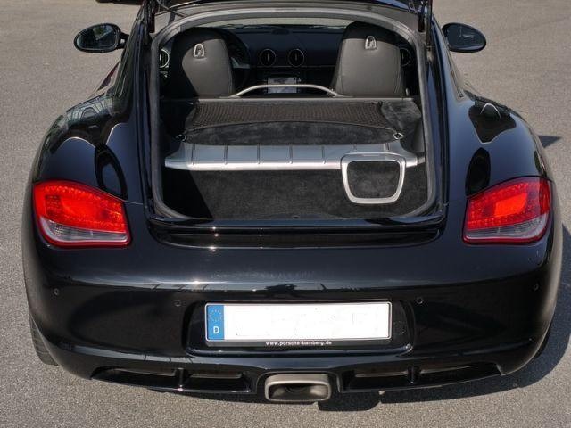 Un châssis très dynamique, qui ne sacrifie pas le confort sur l'autel de la sportivité. Plus souple et moins rigide que son grand frère, le Cayman S 320 cv, homogénéité est le mot approprié pour définir les propriétés du châssis du Cayman 2.9 car, il sait rassembler les qualités qui font une grande GT: dynamisme et confort. Une direction ferme et ultra précise rend le reptile agile sur route, dans l'eau c'est une autre histoire...C'est pour éviter ce scénario catastrophe, d'une sortie de route mouillée, que les antipatinages se déclenchent, merci PSM !. L'amortissement est manifestement plus souple que la version S, plus sportive, fait normal me direz-vous, et le roulis reste bien contrôlé. Suspension souple et confortable, mais divinement calibrée pour l'attaque, associée à un freinage puissant et endurant, à hauteur de la réputation de Porsche. Les passages de courbe à vive allure sont le terrain de chasse du petit prédateur, aux dents et au moteur affutés, qui, tel le caiman, a les yeux plus gros que le ventre.