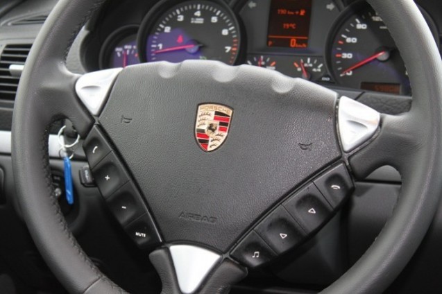 En cuir couleur intérieure, avec écusson Porsche en relief et surpiqûre décorative.